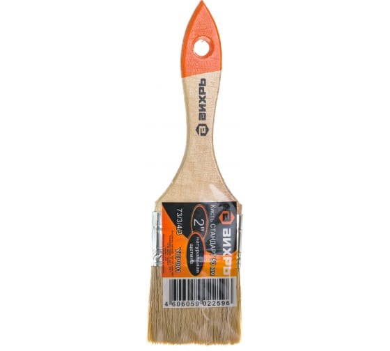Кисть 50 мм 2 дюйма натуральная щетина Вихрь СТАНДАРТ 73/3/4/3 - универсальный инструмент, который легко справится как с небольшими объемами работ, так и с поверхностями большой площади.